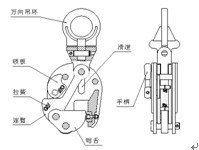 1.1 豎吊鋼板起重鉗(以下簡(jiǎn)稱豎鉗),采用低合金高強(qiáng)度結(jié)構(gòu)鋼制造并熱處理而成。豎鉗具有萬向吊環(huán),使用范圍廣、安全和靈活等特點(diǎn)。